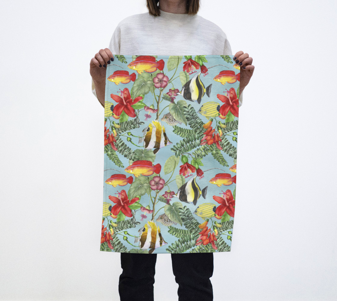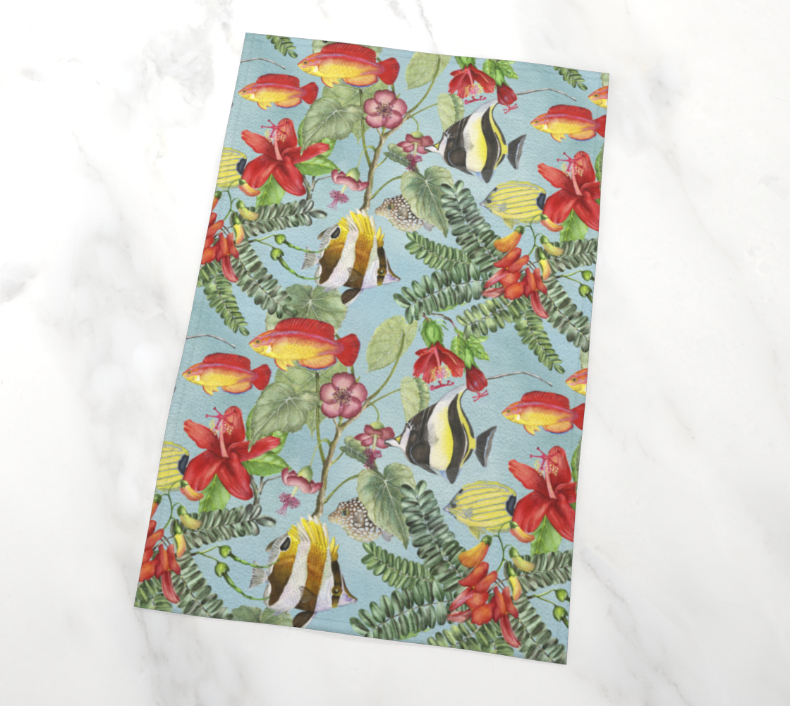 Hawaiian Florals & Reef Fish Tea Towel