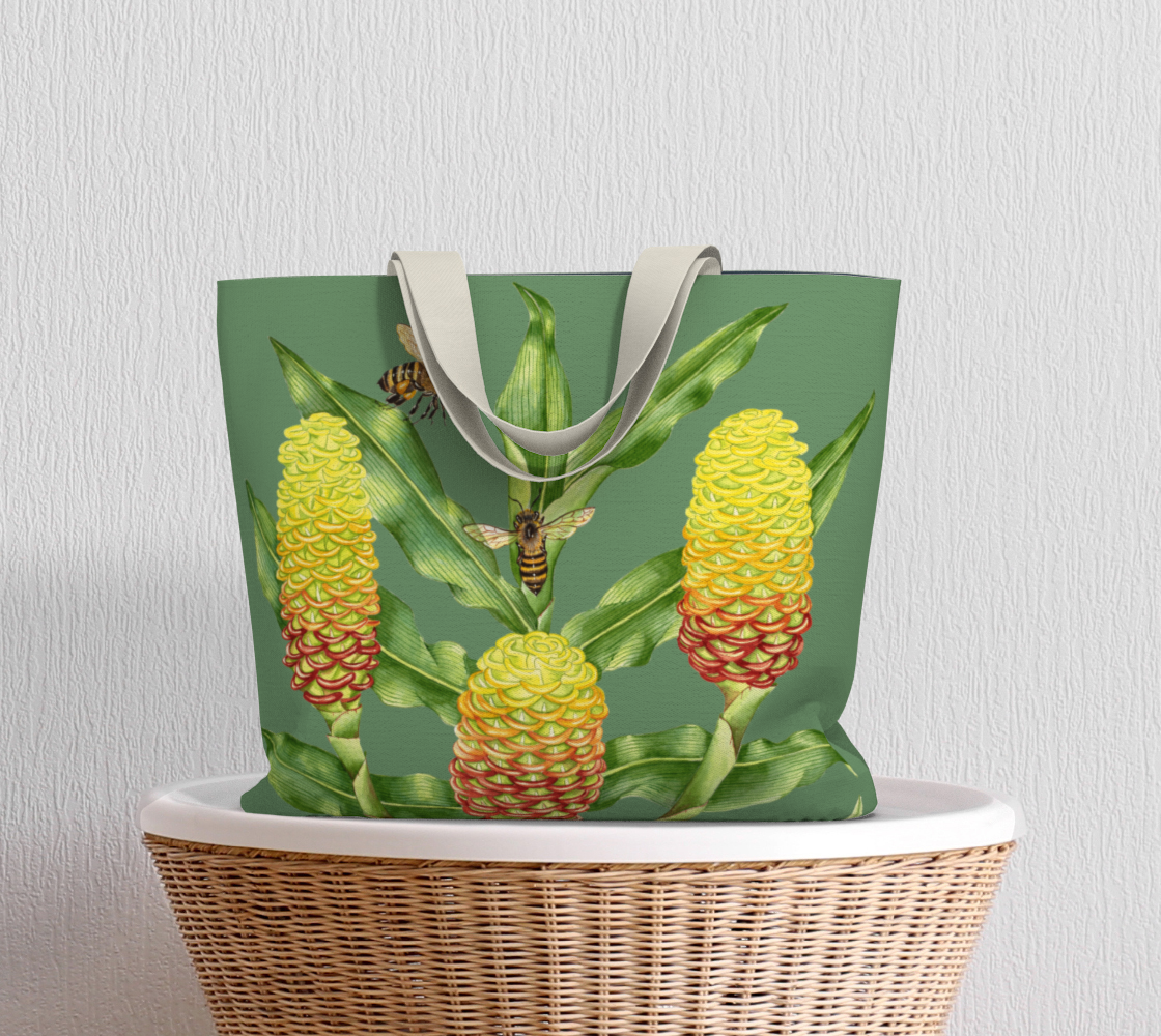 Image 1 of 6 Image 2 of 6 Image 3 of 6 Image 4 of 6 Image 5 of 6 Image 6 of 6 Honeycomb Ginger Market Tote from $35.00 This well constructed oversized tote bag features my original watercolor art. Perfect for the beach, farmer's market, yoga class, and so much more. • Made from Cotton Canvas • Functional, oversized dimensions of 20” wide, 15” tall and 4” deep • Navy blue lining with pockets Fabric: Select Fabric Cotton Canvas Style: Select Style Market Tote (lined) Large Basic (unlined) Strap Color: Select Strap Color Natural cotton (1.5") Add To Cart Added! This well constructed oversized tote bag features my original watercolor art. Perfect for the beach, farmer's market, yoga class, and so much more. • Made from Cotton Canvas • Functional, oversized dimensions of 20” wide, 15” tall and 4” deep • Navy blue lining with pockets